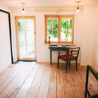 Entdecke unsere Räume und Möglichkeiten. Unsere Zimmer - komfortabel, modern & klimabewusst gestaltet. Fühl dich wie zuhause in unserer großen Wohnküche - Wohnzimmer 30 qm, Schlafzimmer, 12 qm, Bad 10 qm. Unsere Ausstattung beinhaltet einen Beamer, div. Kaffeemaschinen, Spülmaschine, Raclette, Backofen, Herd, Kühlschrank mit Gefrierfach, Stabmixer, WLAN, Waschmaschine zubuchbar